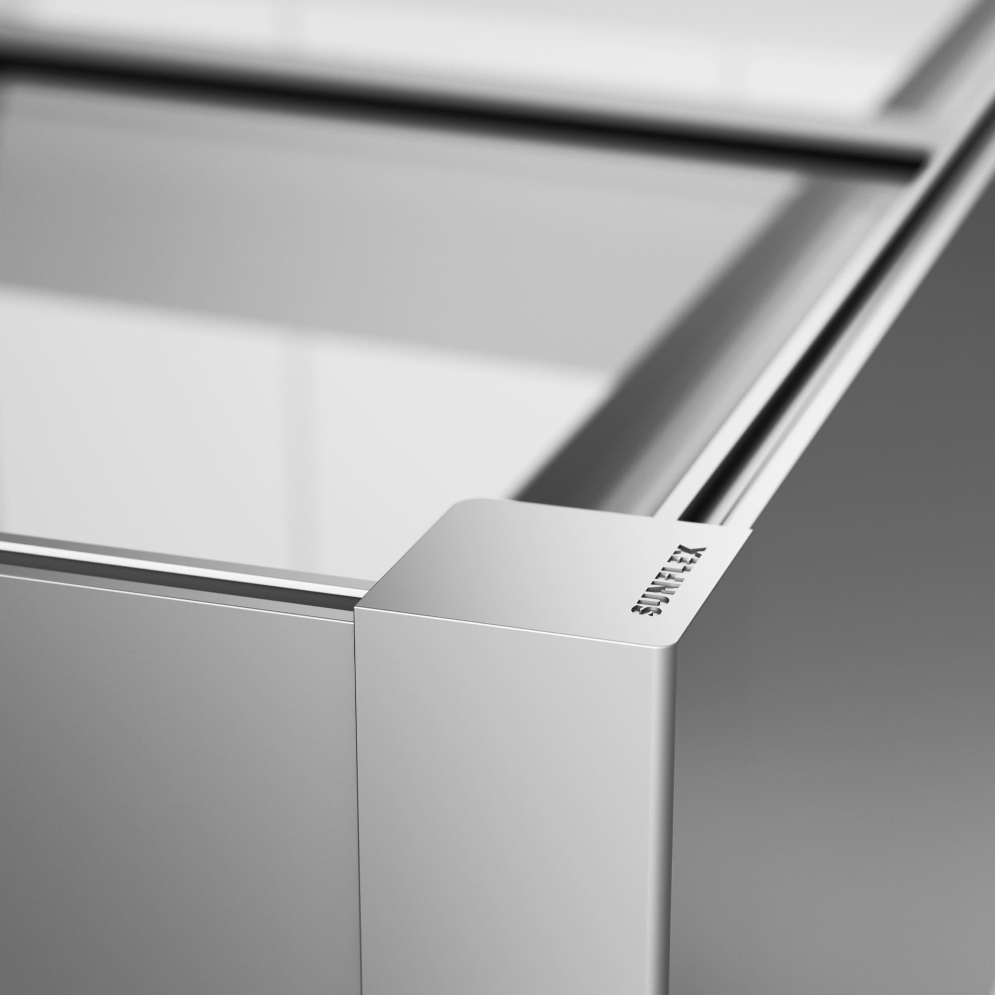 SUNFLEX býður nú upp á fleiri hönnunarmöguleika fyrir sólskála. Eins og með öll SUNFLEX þök notum við eingöngu hágæða snið og yfirklæðningar sem eru án sýnilegra skrúfa. Ef auðsynlegt er, er hægt að nota viðbótar stálinnlegg fyrir hámarks stöðugleika.