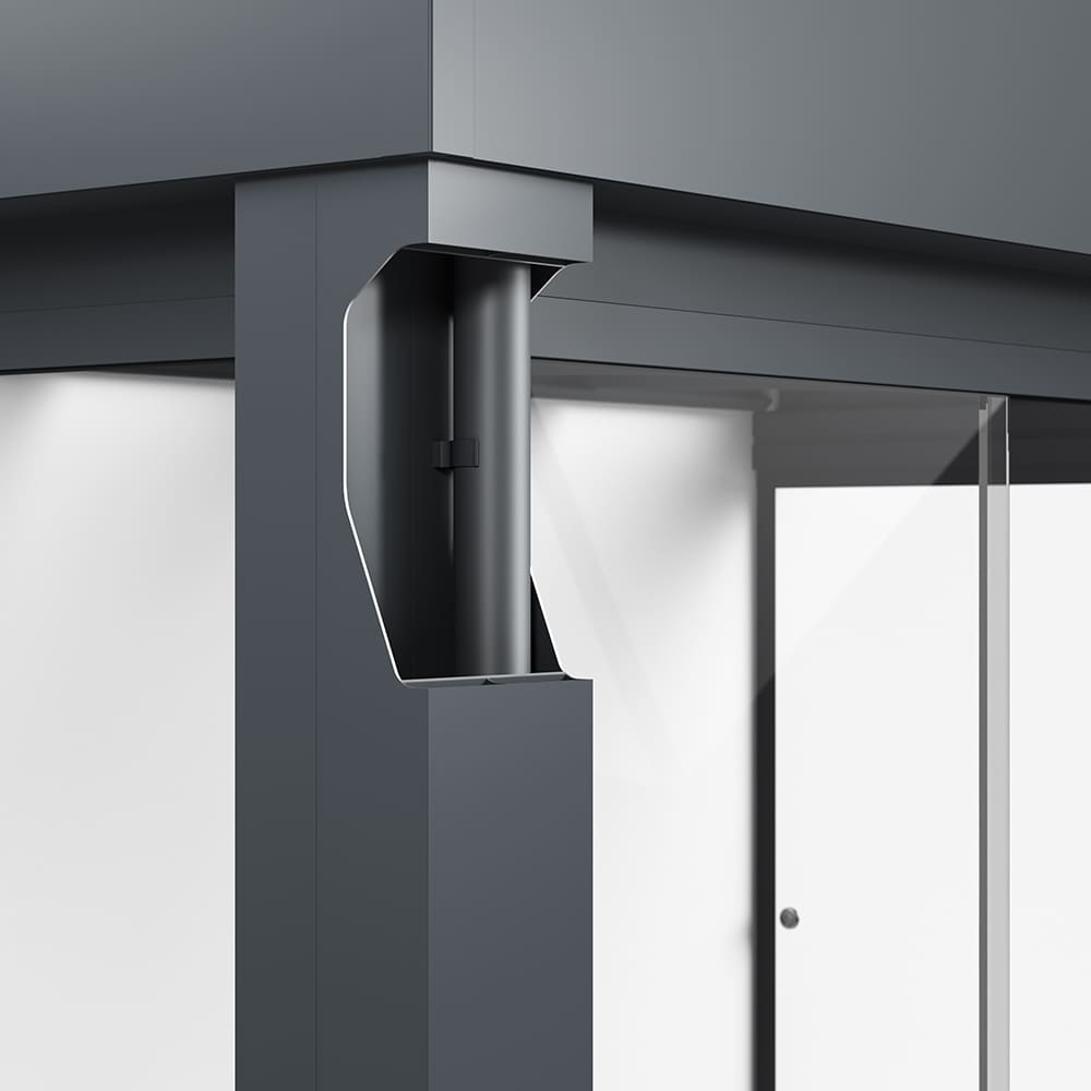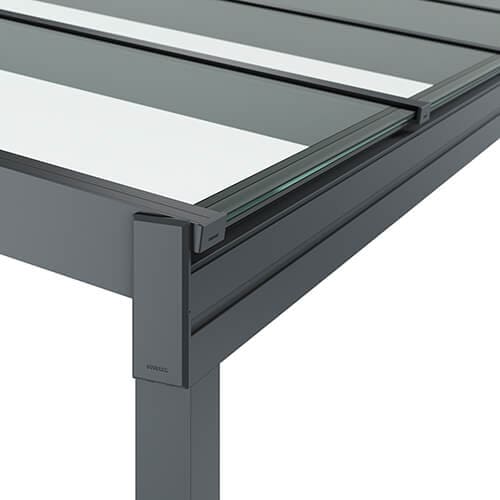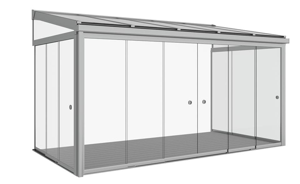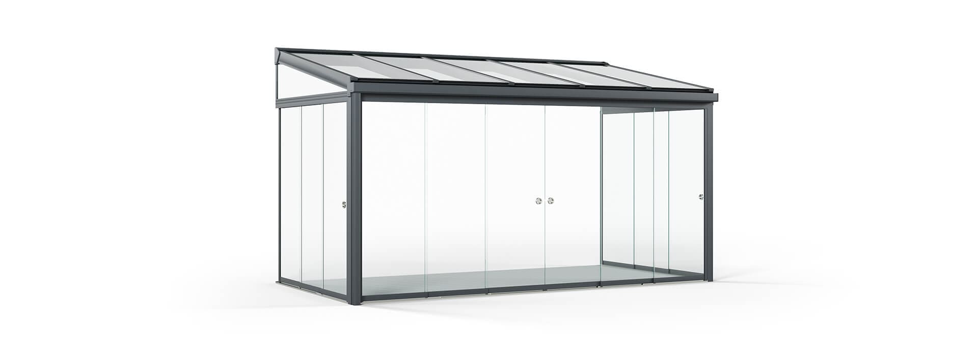SUNFLEX SF300 Glerskáli gerður fyrir nútíma arkitektúr: með hans kubísk hönnun, SF300 bætir við íbúðarhús og Atvinnuhúsnæði. Vatnsrennsli er tryggt með lágmarks þakhorn 2 gráður. Fjölhæf, samþætt LED framljós veita skemmtilega lýsingu á kvöldin.